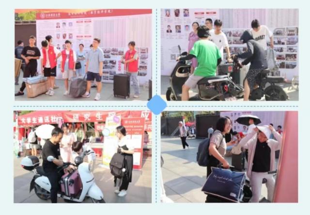 而如果你身上的行李太多,拿不动了怎么办呢?在这里,我们的服务不仅止于流程的顺畅,还包括了贴心的关怀。我们的志愿者会骑着小电驴,将需要帮助的每一位新生以及他们的行李送到寝室,这不仅为新生提供了极大的便利,也充分展现了应用经济学院学子之间的深厚情谊和乐于助人的精神。在这里,我们不仅追求流程的高效,更注重人与人之间的互助和友情。