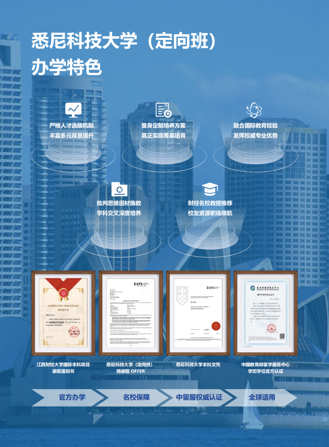 第三、第四年在悉尼科技大学2年完成专业课程学习,获得悉尼科技大学学历学位证,回国后其学历学位由中留服予以认证。