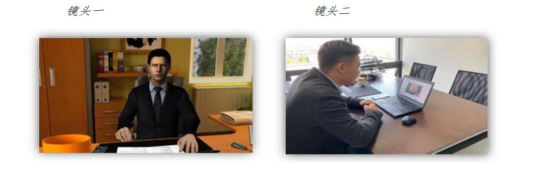 3.面试前按要求安装调试好设备。考生端两台设备开启摄像头,电脑自带摄像头对准考生本人,另一部电脑或手机摄像头从考生后方成45°拍摄。要保证考生考试屏幕能清晰地被面试专家组看到。见附图: